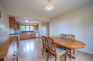 Whilst in need of some modernisation, Lambill offers a generous layout spanning two floors and a delightful countryside setting minutes from St Andrews. From the sweeping driveway, a charming gate leads to the front door and the spacious carpeted hallway. Passing a ground-floor WC, you arrive at the light-filled living room. Boasting a living flame fireplace nestled in a stone mantle, carpeting, and a calm colour palette it is an inviting living and reception area that leads seamlessly into the adjoining south-facing conservatory through French doors. With garden views and access, the conservatory is the perfect place to unwind. Across the hallway is the bright dual-aspect dining kitchen spanning the length of the home. L-shaped in design the modern kitchen overlooks the rear garden and features oak-effect wall and floor units alongside complementary smooth black worktops and a tiled splashback. Together with a Belfast sink, integrated appliances include an oven, induction hob, extractor hood, and dishwasher. A built-in cupboard and utility leading to the garden, offer further storage solutions. The dining room with its wood-inspired flooring and neutral decor is a perfect place for family life and entertaining. Completing the layout on this floor is a versatile double bedroom or study. Ascending the carpeted staircase you arrive at the first floor and three double bedrooms. Bathed in natural light, the extremely spacious principal double bedroom enjoys a stylish finish of handsome wooden flooring and soft neutral tones. It also benefits from a built-in wardrobe. The two additional double bedrooms are both well-presented and comfortable, and share access to a family bathroom now requiring a cosmetic upgrade but equipped with a WC, bath with a wall-mounted shower, and washbasin built into vanity.